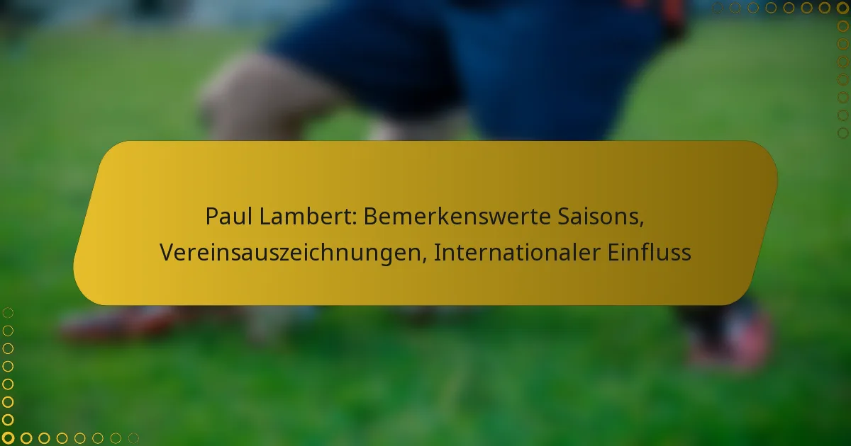 Paul Lambert ist eine herausragende Persönlichkeit im Fussball, bekannt für seine bemerkenswerten Saisons und seine Führungsstärke in verschiedenen Clubs, darunter Celtic und Borussia Dortmund. Sein beeindruckendes Trophäenschrank umfasst mehrere Titel, wie die Scottish Premier League und die UEFA Champions League, was seinen Einfluss sowohl als Spieler als auch als Trainer unterstreicht. Darüber hinaus gehen Lamberts Beiträge zum schottischen Fussball über die Erfolge im Verein hinaus, indem er die Jugendentwicklung beeinflusste und ein bleibendes Erbe in internationalen Wettbewerben hinterliess.